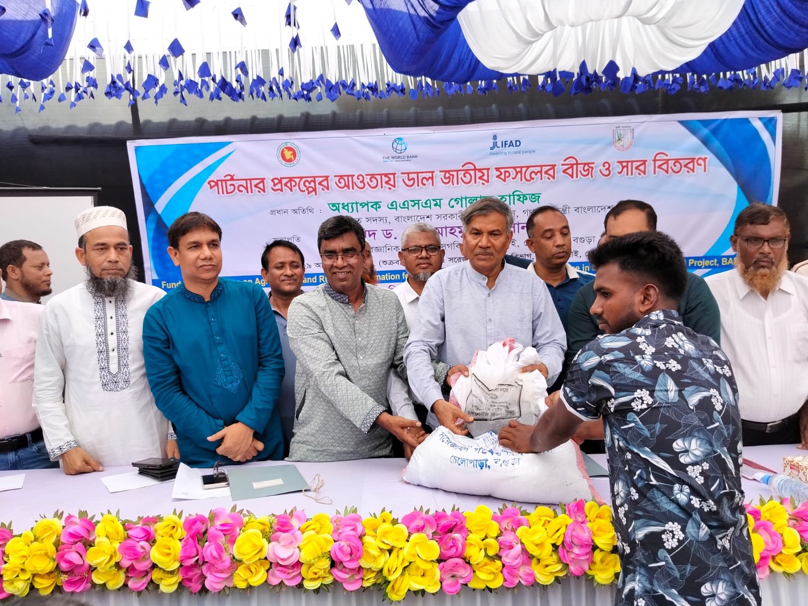 বগুড়ায় চরাঞ্চলের দুই শতাধিক কৃষকের মাঝে ডাল বীজ ও সার বিতরন