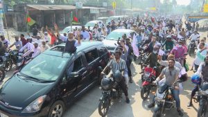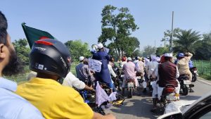আসন্ন ত্রয়োদশ নির্বাচনে বগুড়া-৭ আসনে জামায়াতে ইসলামীর প্রার্থী গোলাম রাব্বানীর দাড়িপাল্লা প্রতীকের পক্ষে নির্বাচনী শোডাউন হয়েছে। শনিবার সকাল সাড়ে নয়টায় শাজাহানপুর উপজেলার নিশ্চিন্তপুর নামক স্থান থেকে এ মটর সাইকেল শোভাযাত্রা শুরু হয়। প্রায় ৫ শ মটর সাইকেল নিয়ে শোভাযাত্রা শুরু করলেও পরে সহস্রাধিক মটর সাইকেল র্যারিতে যোগ দেয়। বগুড়ার গাবতলী থানা মোড় হয়ে পেরীরহাট, বাগবাড়ী হয়ে পরে শাজাহানপুরের বিভিন্ন এলাকায় শো ডাউন করে। মটর সাইকেল শোভযাত্রা থেকে দাড়িপল্লা মার্কায় ভোট চায় জামায়াত কর্মিরা। শাজাহানপুর ও গাবতলী উপজেলা নিয়ে বগুড়া ৭ আসন। এ আসন থেকে বিএনপির চেযারপার্সন বেগম খালেদা জিয়া ১৯৯১ সাল থেকে টানা ৪ বার বিপুল ভোটে নির্বাচিত হয়েছিলেন। শহীদ প্রেসিডেন্ট জিয়াউর রহমানের বাড়ী বগুড়ার গাবতলী উপজেলার বাগবাড়ীতে।